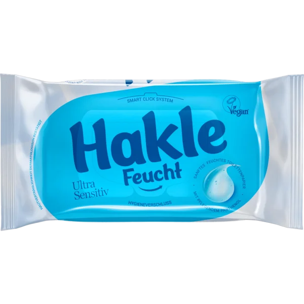 Hakle Ultra Sensitiv to nawilżane chusteczki toaletowe, które oferują wyjątkowo łagodne oczyszczanie wrażliwej skóry. Formuła wzbogacona pantenolem zapewnia intensywne nawilżenie, pozostawiając skórę miękką i zadbaną. Produkt jest rekomendowany przez Niemieckie Stowarzyszenie Alergików i Astmy oraz posiada pieczęć ECARF, co potwierdza jego wysoką jakość i bezpieczeństwo.
