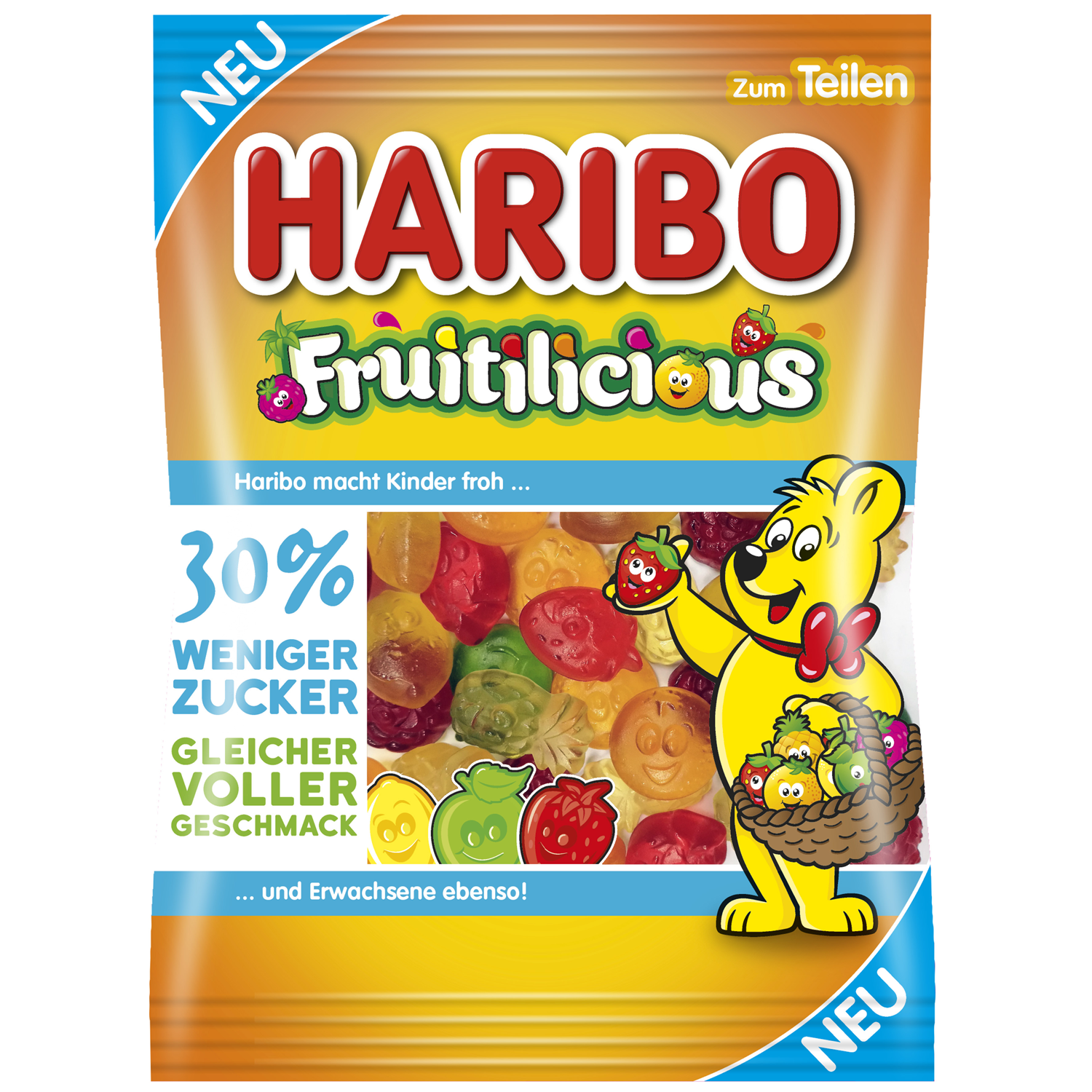 Haribo Fruitilicious 30% Mniej Cukru Żelki 160 g