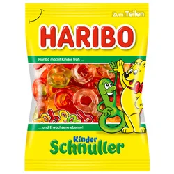 Haribo Kinder Schnuller Żeki to smaczne smoczki dla dzieci, które zachwycą najmłodszych swoją owocową nutą. Oferują smak ananasa, truskawki, maliny, soku pomarańczowego i cytrynowego. To kolorowa i apetyczna przekąska, idealna dla dzieci w różnym wieku.