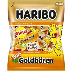 Haribo Minis Saft Goldbären to wyjątkowe fruktusy, które zawierają aż 25% prawdziwego owocowego soku. W pięciu soczystych smakach – jabłko, banan, malina, wiśnia i brzoskwinia – te małe, miękkie żelki są prawdziwym rarytasem dla podniebienia. Idealne na drogę, do podzielenia się z przyjaciółmi lub jako słodki przysmak w ciągu dnia.