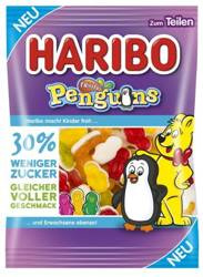 Słodkie dwustronne pingwiny to idealna przekąska dla miłośników owocowych smaków. Zawierają gumę owocową oraz piankę o smaku arbuza, pomarańczy, jeżyny, jabłka i tropiku. Co ważne, mają o 30% mniej cukru, zachowując przy tym wspaniały smak, który uwielbiają wszyscy.