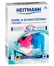 Chusteczki wyłapujące kolor i brud Heitmann to idealne rozwiązanie dla zachowania intensywności kolorów Twoich ubrań. Dzięki nim unikniesz przechodzenia barwników między pranymi rzeczami oraz zminimalizujesz osadzanie się cząsteczek brudu na tkaninach. Twoje białe ubrania pozostaną śnieżnobiałe, a kolorowe zachowają swoją świeżość.