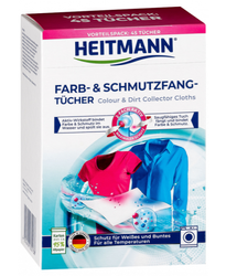 Chusteczki wyłapujące kolor i brud marki Heitmann to doskonałe rozwiązanie, które chroni Twoje prane tkaniny. Zapobiegają one przenikaniu kolorów między różnymi materiałami oraz skutecznie eliminują cząsteczki brudu z wody podczas prania. Dzięki nim Twoje ubrania zachowają intensywność barw, a białe tkaniny pozostaną śnieżnobiałe.