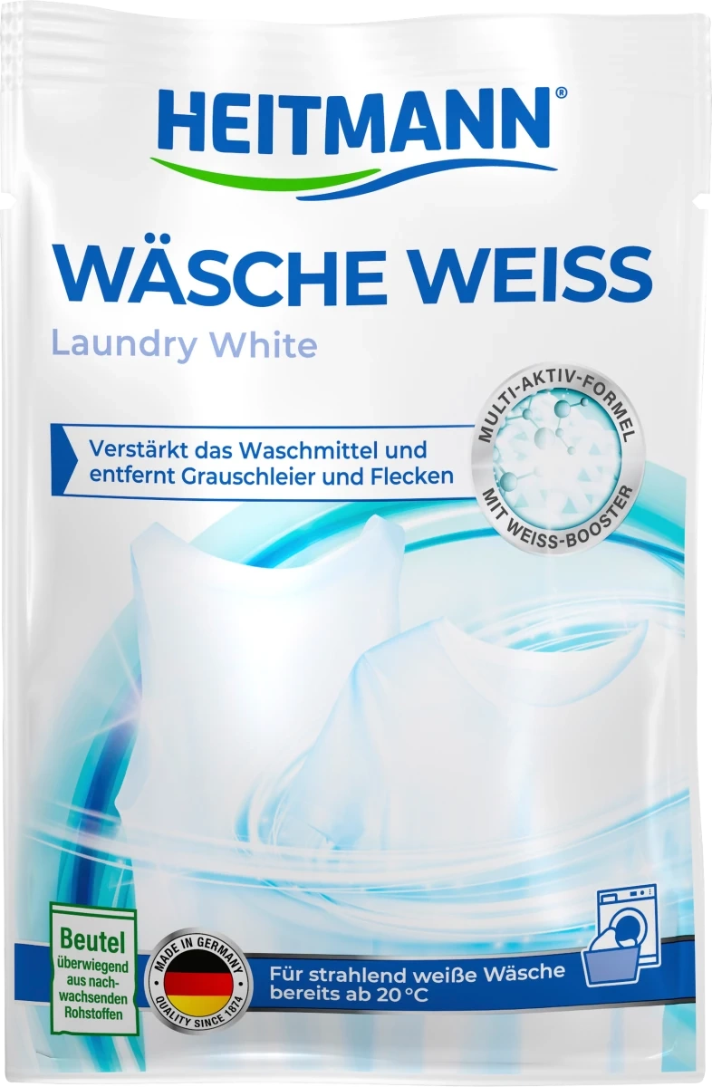 Heitmann Wäsche-Weiss to idealny wybór dla osób, które pragną przywrócić blask białemu praniu. Ten specjalny środek skutecznie usuwa szare zamglenie i żółte przebarwienia, działając już w temperaturze 20°C. Dzięki Heitmann Wäsche-Weiss Twoje białe ubrania i pościel będą wyglądać jak nowe.