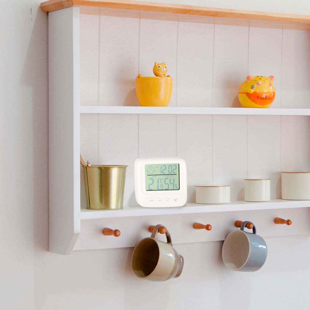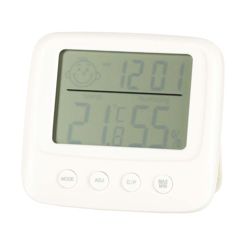 Oprócz pomiaru wilgotności, urządzenie również mierzy temperaturę, a na wyświetlaczu LCD znajduje się zegar z funkcją budzika. To wszechstronne urządzenie zajmuje mało miejsca i łączy funkcje kilku narzędzi, co ułatwia codzienne zarządzanie warunkami w Twoim otoczeniu.