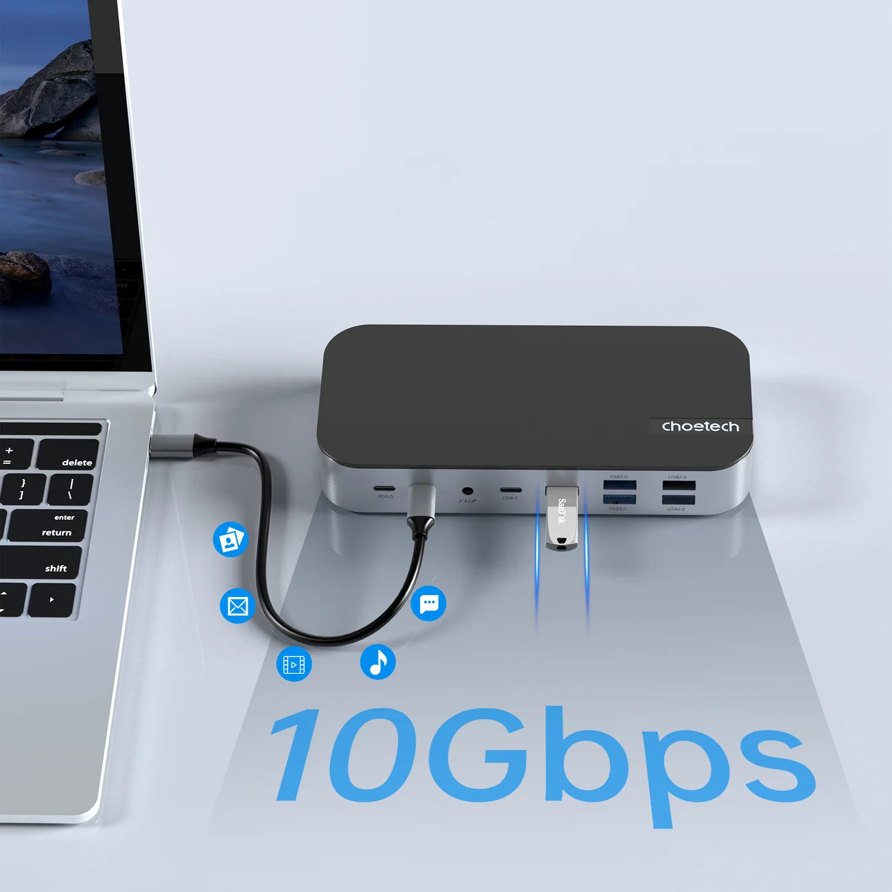 HUB-M52 od marki Choetech to doskonałe rozwiązanie dla osób, które potrzebują wielu złączy USB. Dzięki temu wszechstronnemu urządzeniu możesz wygodnie podłączać różnorodne urządzenia peryferyjne, takie jak myszki, klawiatury czy zewnętrzne nośniki danych. Zyskujesz większą elastyczność w pracy i rozrywce.