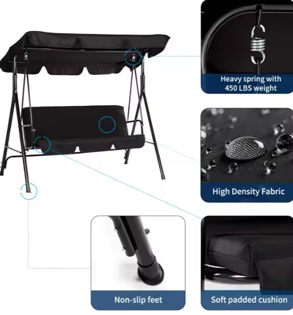HUŚTAWKA TRZYOSOBOWA OGRODOWA BUJANA MATERAC CZARNA