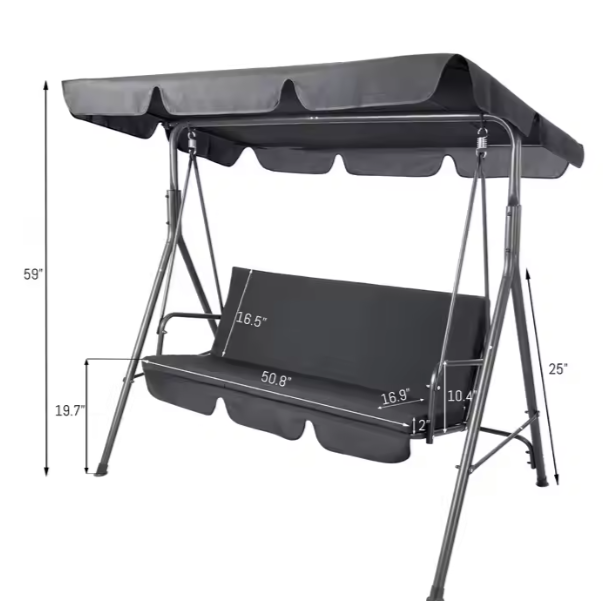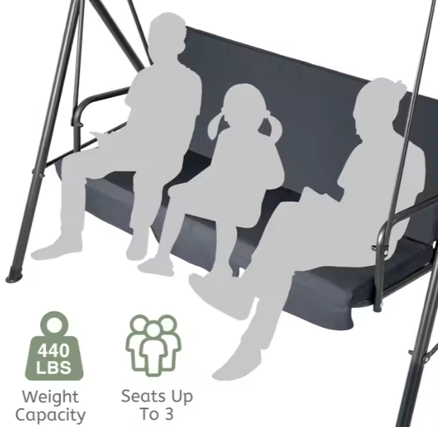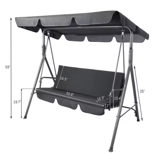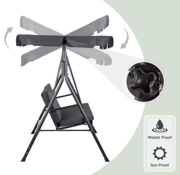 Stelaż wykonany z wytrzymałej stali malowanej proszkowo zapewnia odpowiednią stabilność i odporność na warunki atmosferyczne. To sprawia, że huśtawka jest nie tylko trwała, ale i bezpieczna w codziennym użytkowaniu. Miękki, gruby materac w zestawie oferują wygodę, której oczekujesz od mebli klasy premium – bez kompromisów. Stałe zadaszenie nie tylko chroni przed intensywnym słońcem, ale też dopełnia estetyczny wygląd całej konstrukcji.
