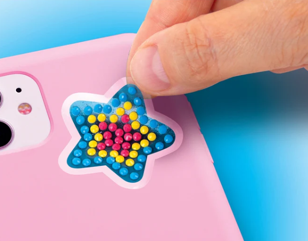W zestawie ilustrowana instrukcja, objaśniająca dzieciom każdy etap, oraz specjalne pióro do chwytania kamyków i kolorowe, ponumerowane kartki, aby ułatwić naklejanie kryształków.