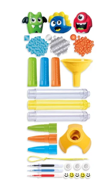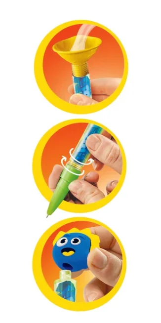 Oryginalny zestaw, służący do złożenia 3 długopisów i ich spersonalizowania przy pomocy różnych kolorów w stylu monster.