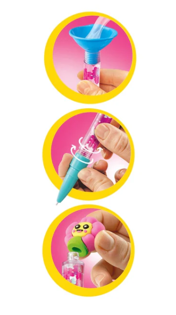 Kreatywne mini laboratorium do zabawy przy tworzeniu kolorowych długopisów za pomocą akcesoriów i dekoracji.