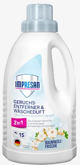 Impresan to skuteczny neutralizator zapachów oraz koncentrat zapachowy do prania, który łączy funkcje higieny i przyjemnego aromatu w jednym produkcie. Dzięki innowacyjnej formule neutralizuje nieprzyjemne zapachy, takie jak pot, dym czy wilgoć, zamiast je maskować.