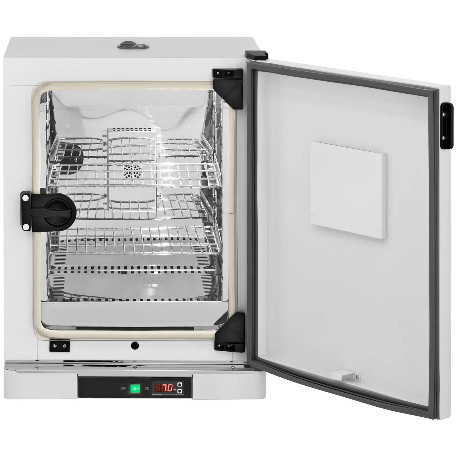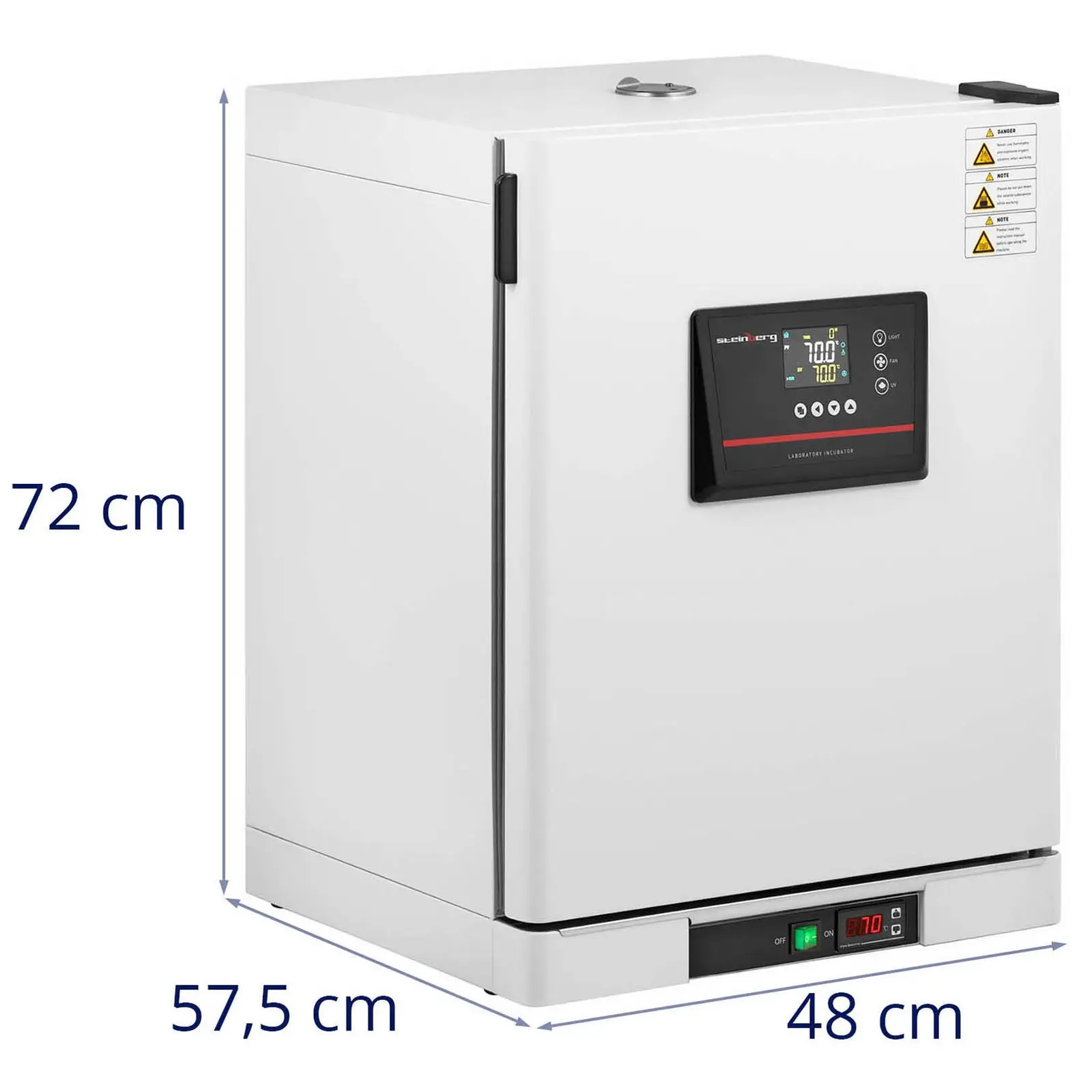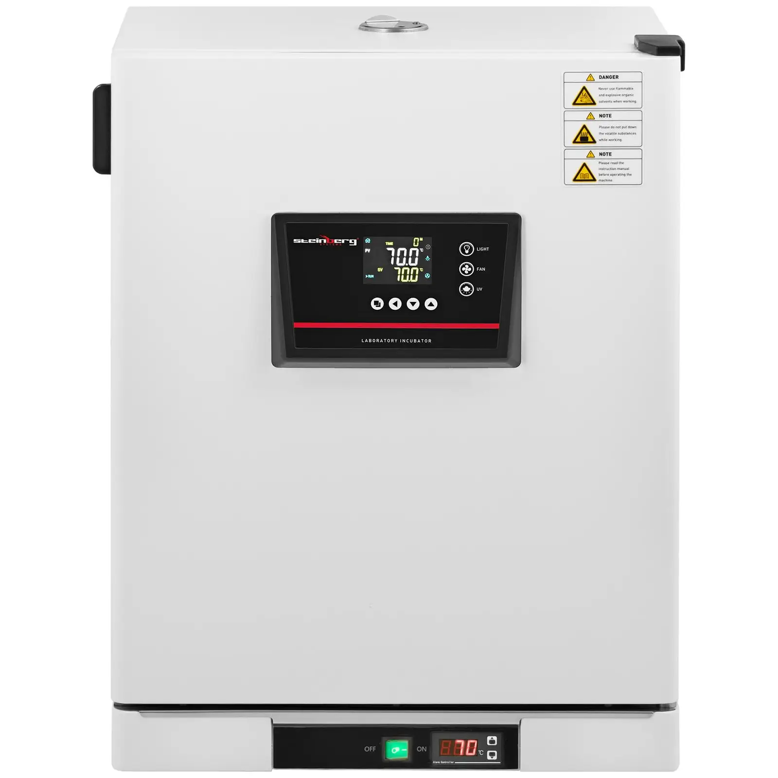 Urządzenie oferuje możliwość ustawienia temperatury w zakresie od 5 do 70°C oraz czasu inkubacji od 0 do 9999 minut. Inkubator wyposażony jest w funkcje zabezpieczające, takie jak automatyczne wyłączanie oraz ostrzeżenie o przekroczeniu temperatury. Dzięki systemowi cyrkulacji powietrza, temperatura utrzymywana jest z dokładnością do ± 1.5°C, co zapewnia równomierne rozprowadzenie ciepła.