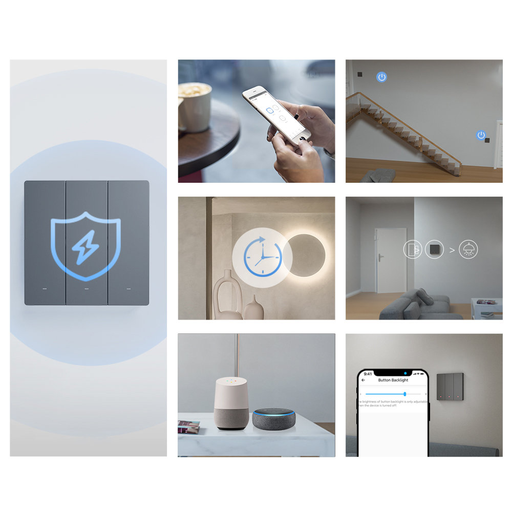 Oferujemy nowoczesny przełącznik ścienny, który umożliwia wygodne zarządzanie oświetleniem w Twoim domu. Dzięki inteligentnym funkcjom, możesz sterować światłem na trzy różne sposoby: za pomocą fizycznego przycisku, aplikacji mobilnej eWeLink oraz asystentów głosowych, takich jak Amazon Alexa, Asystent Google czy Siri.