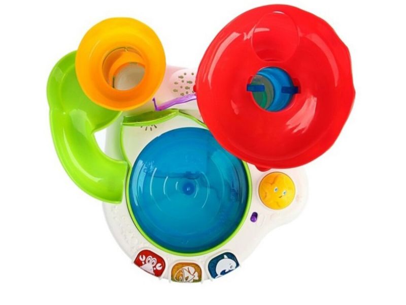 Idealna zabawka dla ciekawskich maluchów. Fontanna z kolorowymi piłeczkami oraz rysunkami morskich zwierzątek to zabawka polecana dla maluchów, które są na etapie zrzucania różnych przedmiotów.