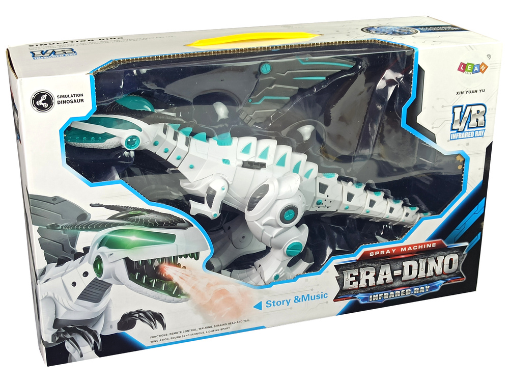 Prehistoryczny gad sterowany jest pilotem na podczerwień. Po włączeniu może chodzić, odtwarzać muzykę, dzielić się historiami i wiedzą oraz mówić po angielsku. Idealna zabawka edukacyjna dla dziecka.