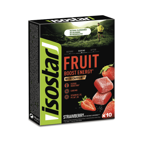 Galaretki o smaku truskawkowym z kofeiną dostarczają energii i pomagają w opóźnieniu zmęczenia. Dzięki witaminom z grupy B oraz C i PP, są idealnym wsparciem podczas długotrwałego wysiłku. Utrzymanie odpowiedniego poziomu minerałów wspiera optymalną pracę mięśni.
