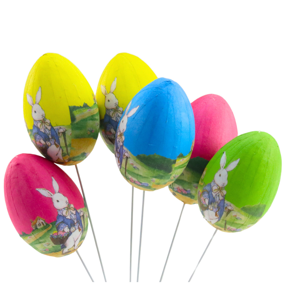 JAJKA WIELKANOCNE NA PIKU DRUCIKU KOLOROWE ZAJĄCZEK Z KOSZYCZKIEM 6SZT