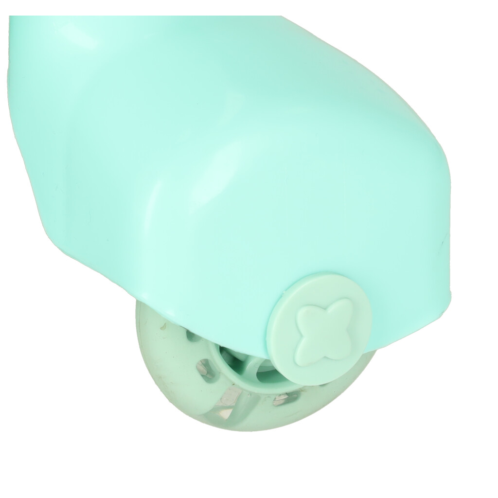 Jeździk jest wyposażony w kauczukowe kółka, które chronią podłogę przed zarysowaniami. Szeroko rozstawione tylne kółka zapewniają stabilność, co minimalizuje ryzyko przewrócenia się. Produkt ma maksymalne obciążenie wynoszące 80 kg, a jego wytrzymała konstrukcja zapewnia długotrwałe użytkowanie.