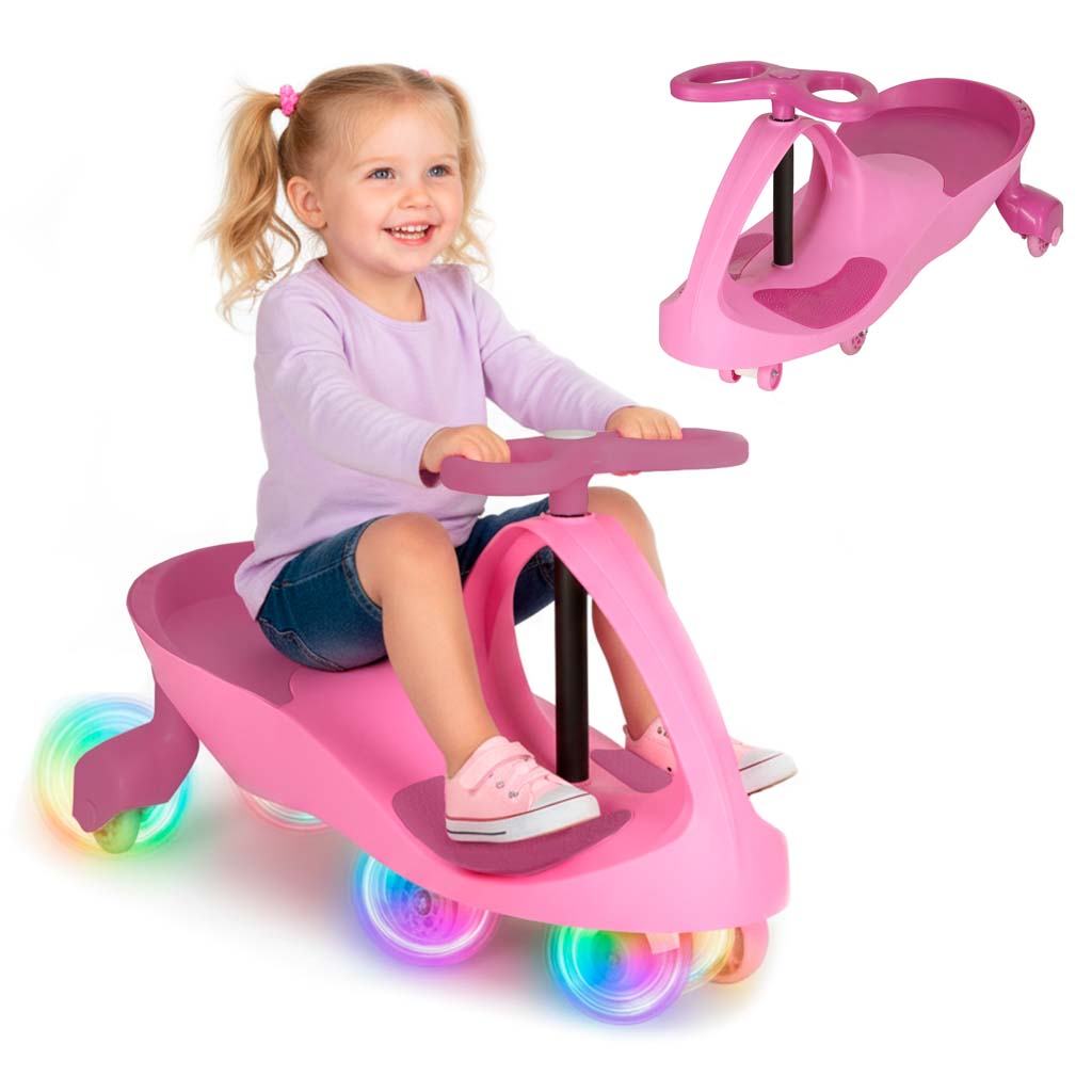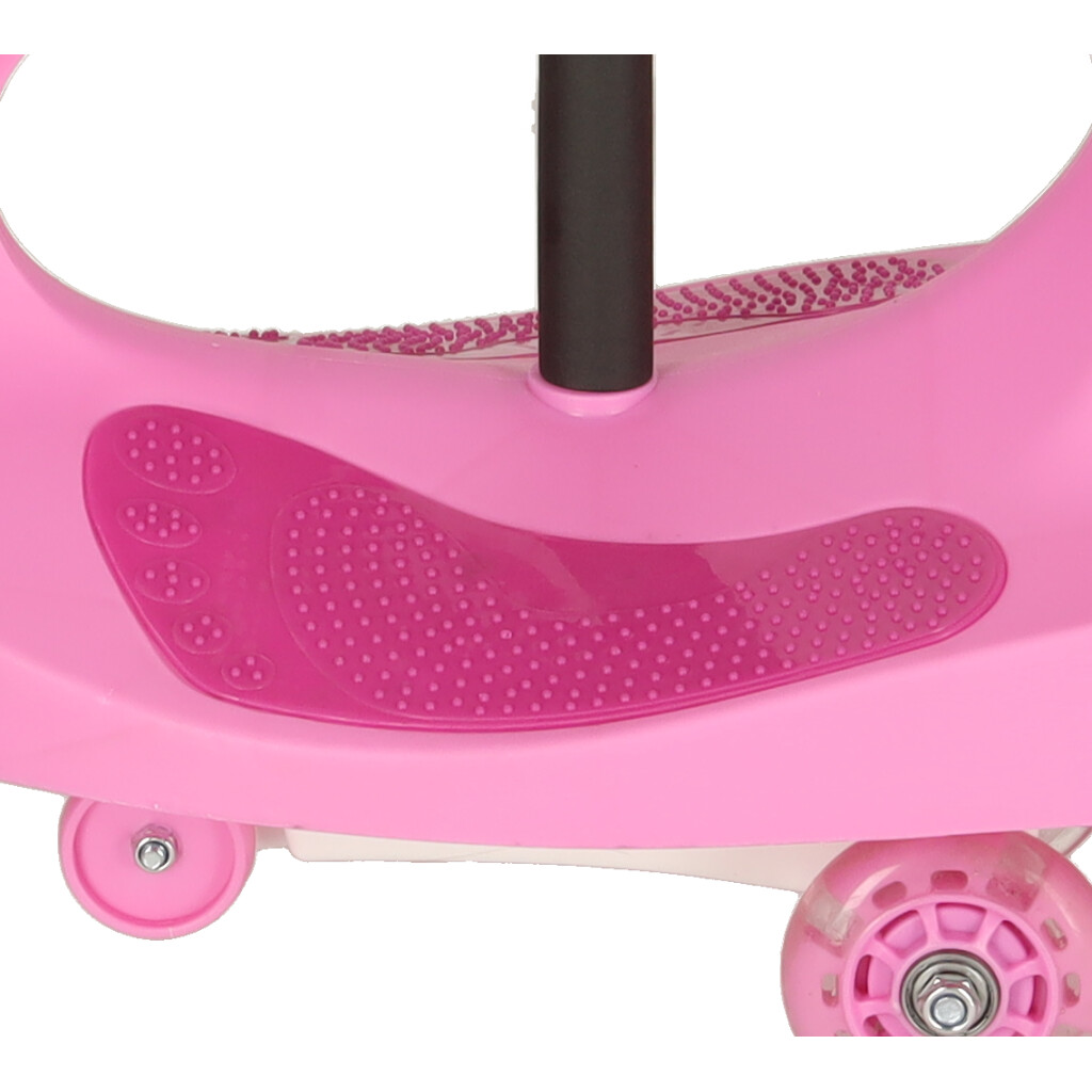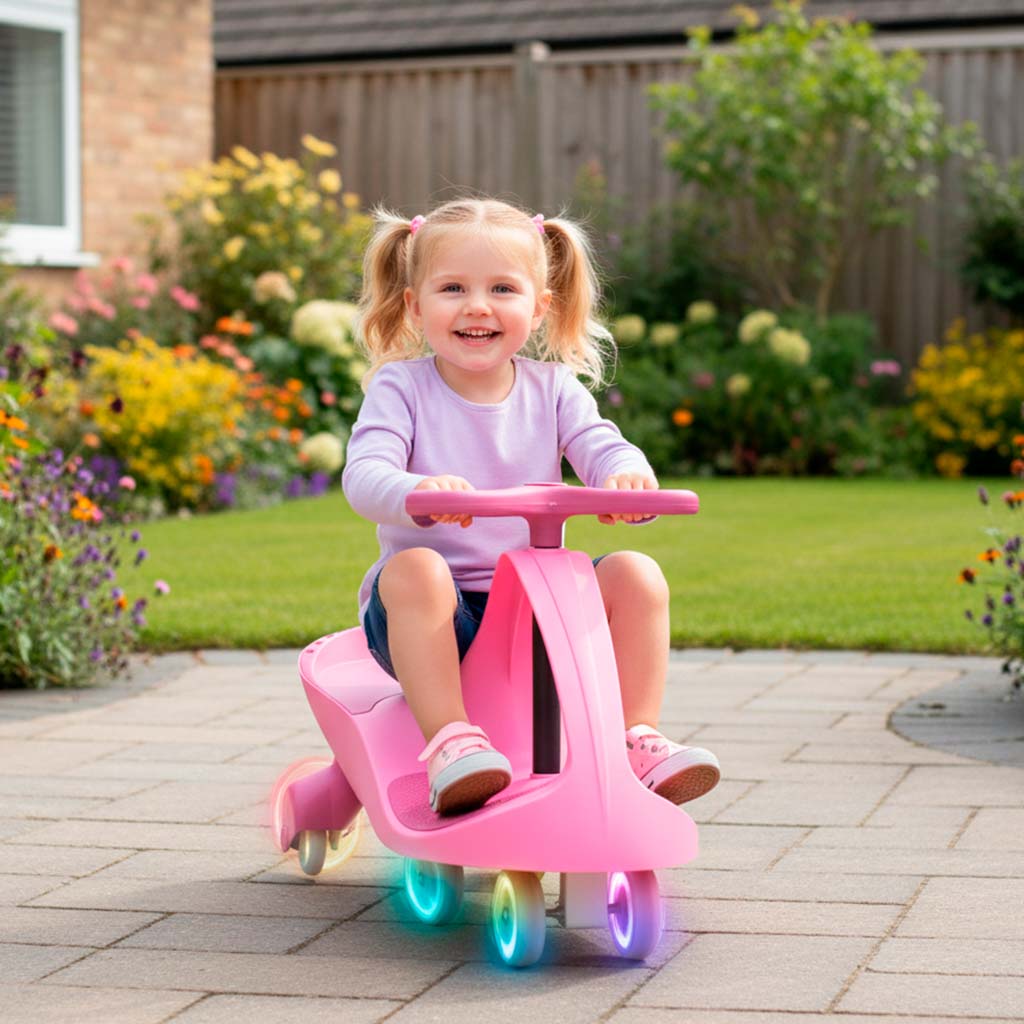 Świecące kółka LED przyciągają uwagę, a kauczukowe kółka chronią podłogę przed zarysowaniami. Szeroko rozstawione tylne kółka zwiększają stabilność, co pozwala uniknąć przewrócenia się jeździka.