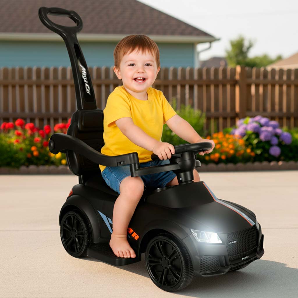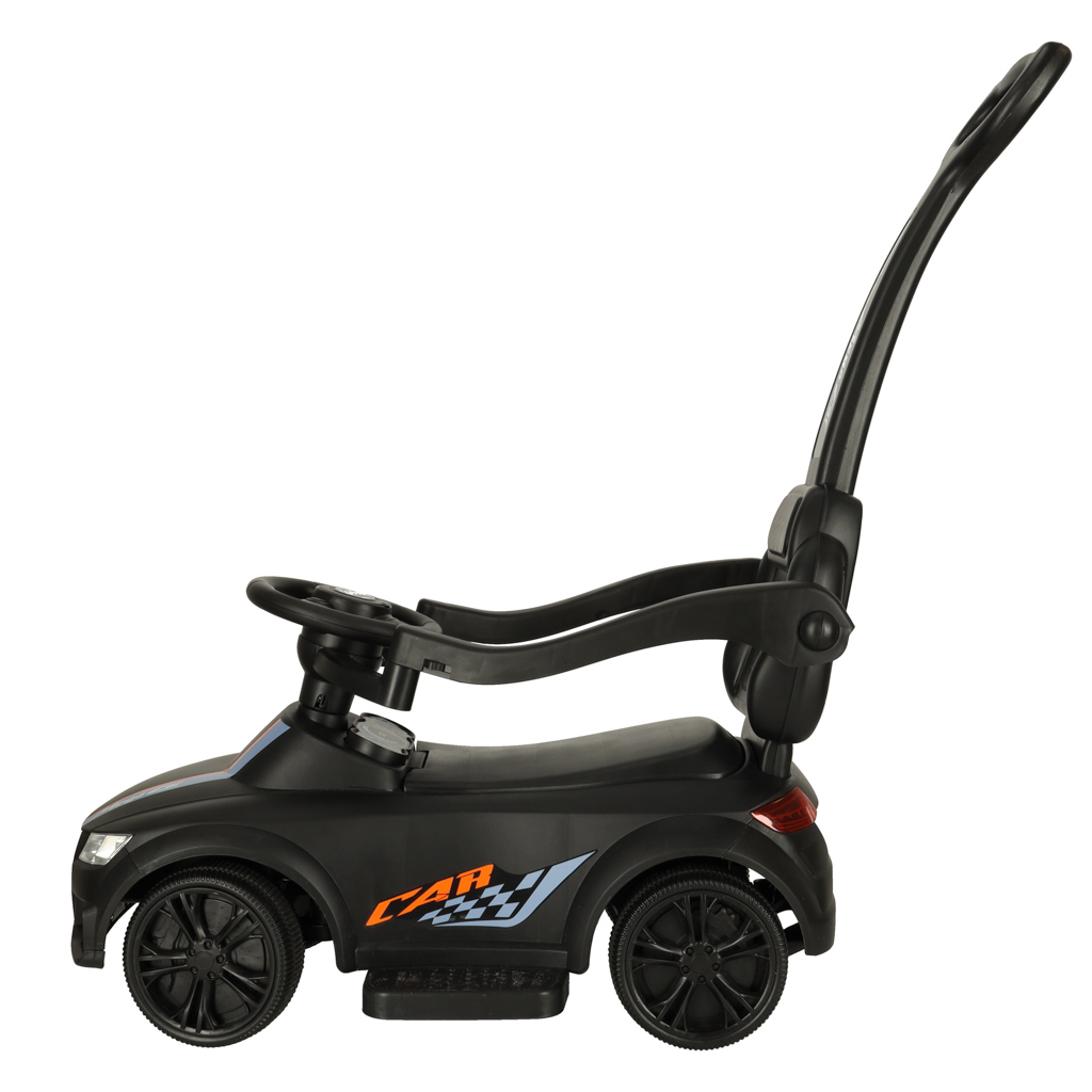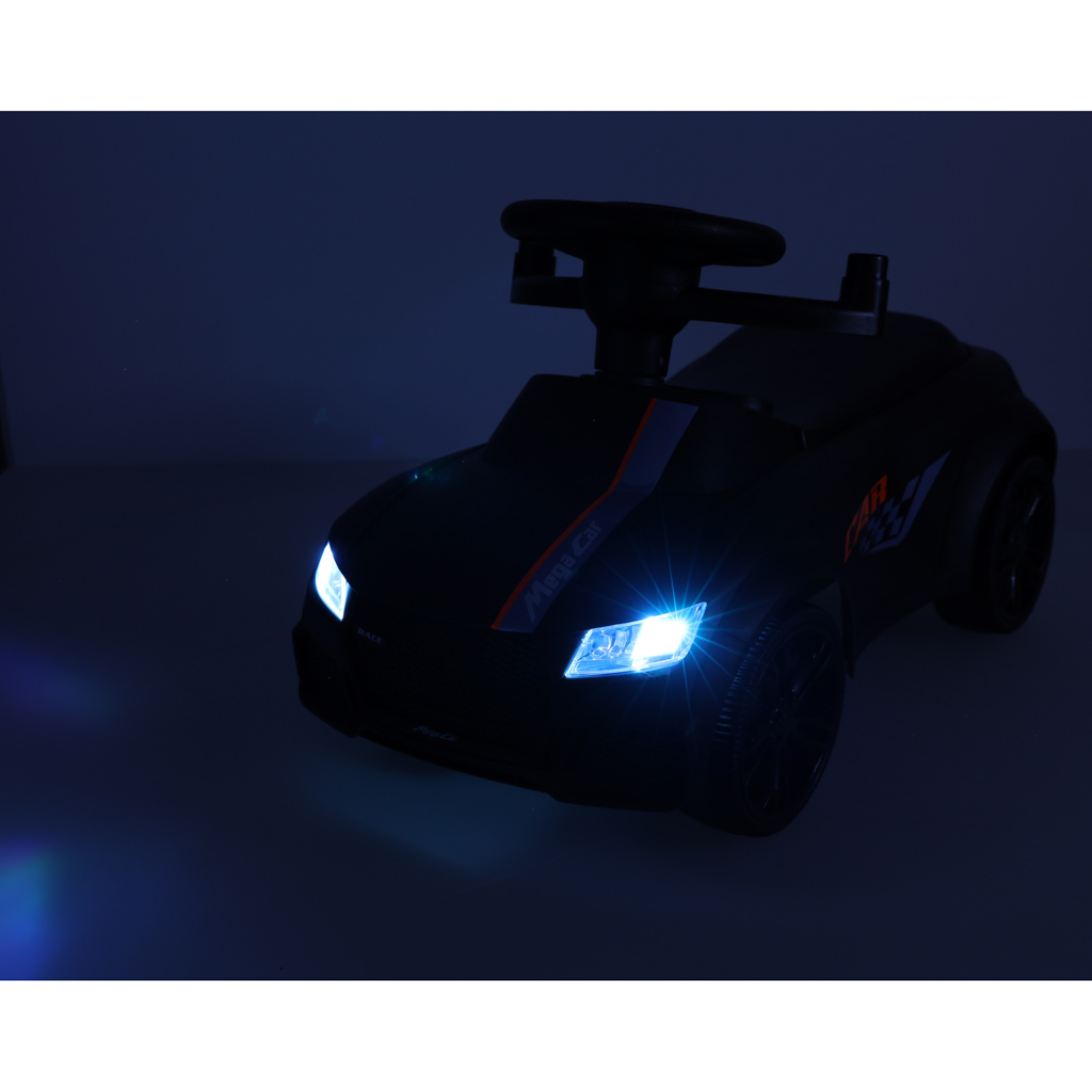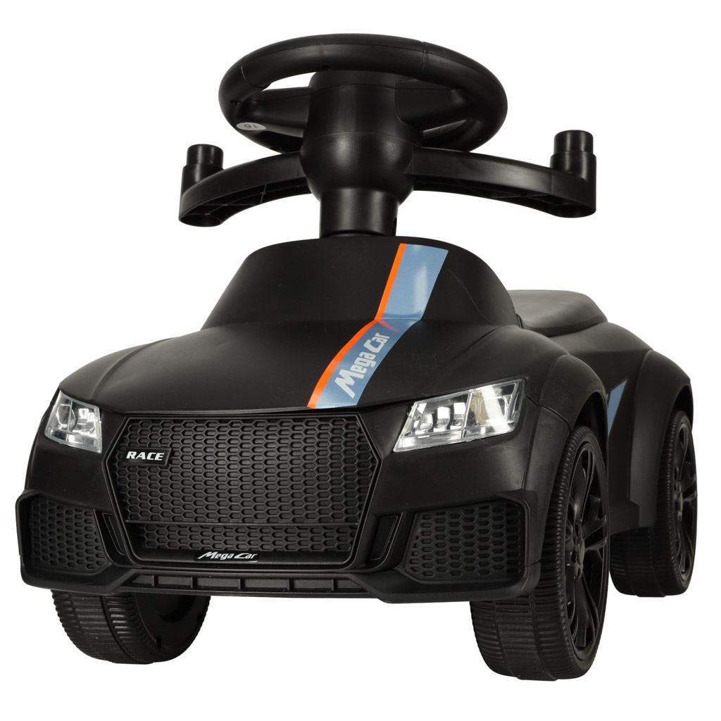 Ten czarny jeździk to idealny pojazd dla każdego malucha. Dzięki oświetleniu i realistycznym dźwiękom, każda przejażdżka staje się wyjątkowa. Wystarczy zainstalować trzy baterie AA, aby dodać magii podczas zabawy.