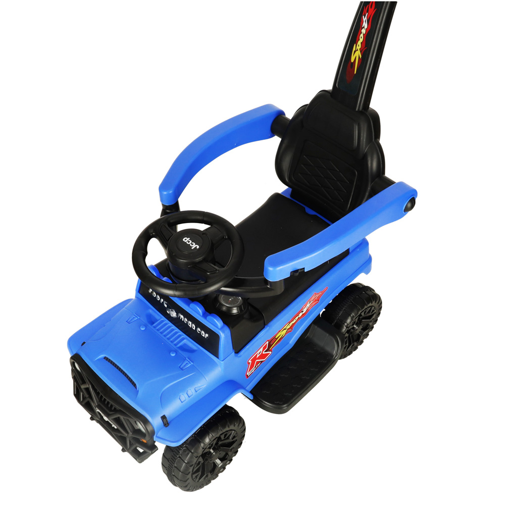 Niebieski jeździk to doskonały wybór dla małych odkrywców! Dzięki wygodnej rączce, wspólne spacery będą przyjemnością. Rodzice mogą prowadzić pojazd, gdy dziecko dopiero zaczyna swoją przygodę z samodzielną jazdą.
