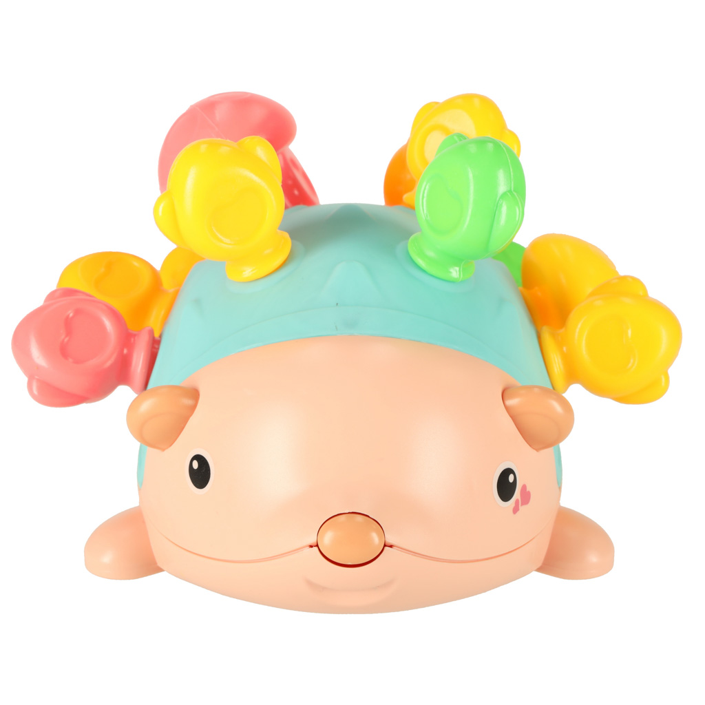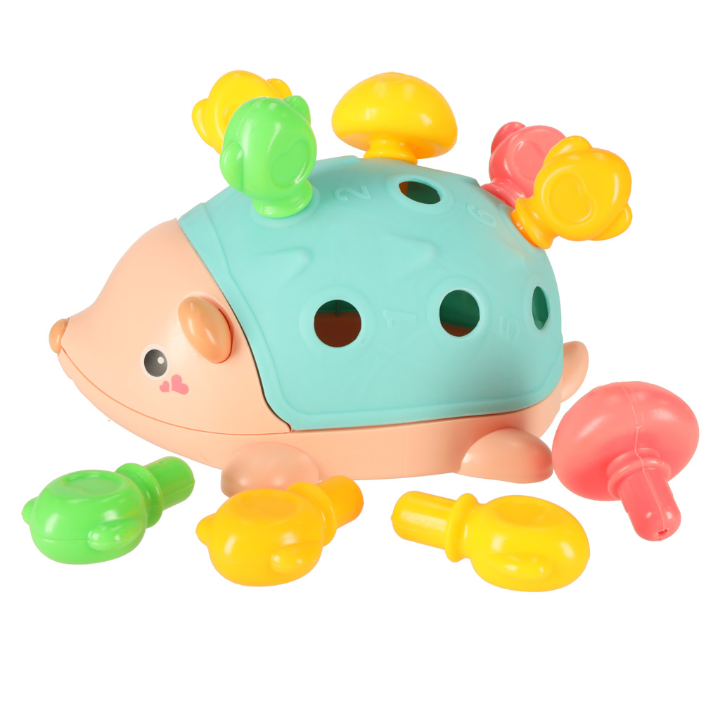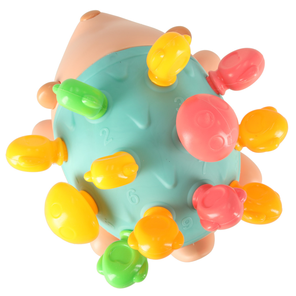 Jeżyk edukacyjny łączy zabawę z nauką. Wystające kolce mają różne faktury, co stymuluje paluszki dziecka. Wkładanie i wyjmowanie kolców rozwija precyzję ruchów dłoni, a jednocześnie dostarcza radości z zabawy.