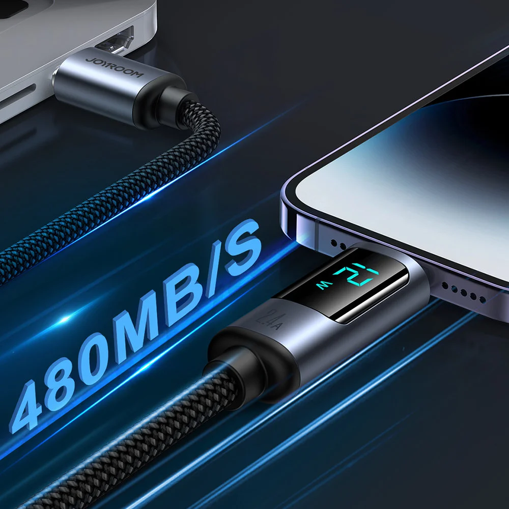 Kabel Joyroom S-AL012A16 to doskonałe rozwiązanie dla użytkowników urządzeń Apple, którzy cenią sobie szybkie i bezpieczne ładowanie. Dzięki natężeniu prądu wynoszącemu 2,4 A, ładowanie odbywa się znacznie sprawniej. Wbudowany wyświetlacz LED umożliwia bieżące monitorowanie parametrów ładowania, co zwiększa komfort korzystania z urządzenia.
