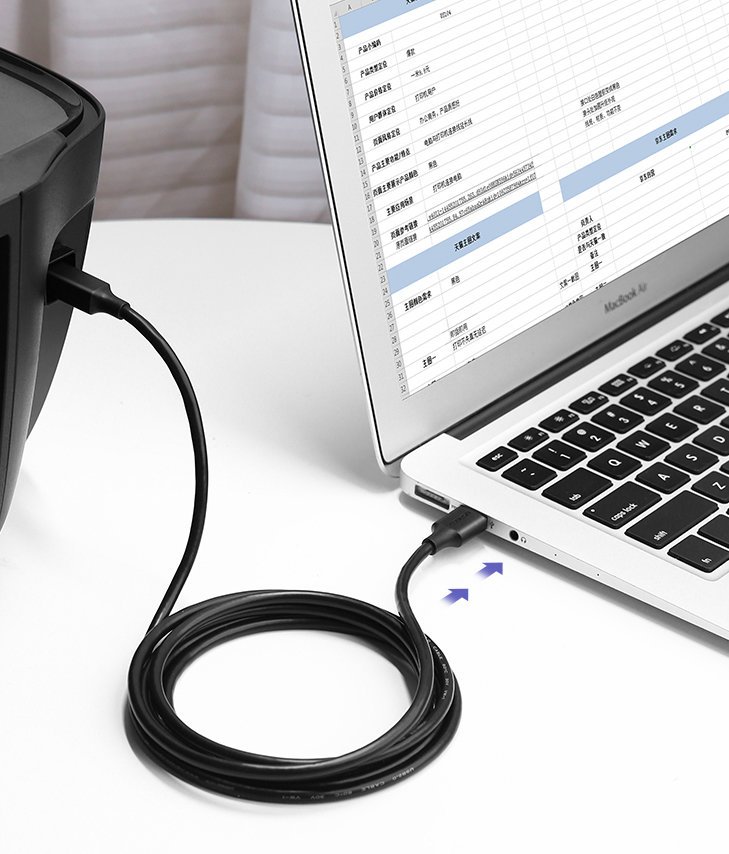 Uniwersalny kabel USB Typ B to idealne rozwiązanie do podłączenia drukarki do komputera. Dzięki długości 1,5 m możesz łatwo połączyć urządzenia znajdujące się w znacznej odległości od siebie. Wysokiej jakości materiały zapewniają stabilność sygnału, co jest kluczowe dla efektywnej pracy w biurze.