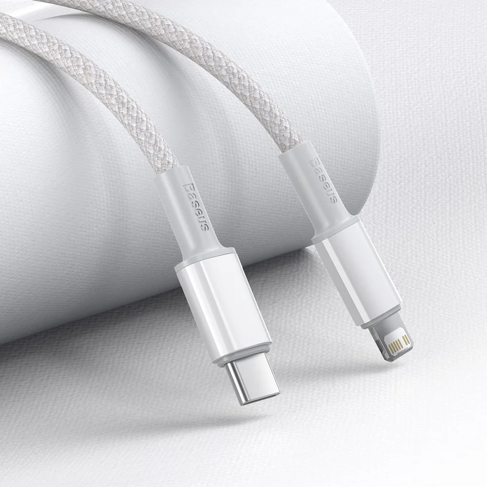 Oferujemy wytrzymały kabel USB Typ C - Lightning w eleganckim, nylonowym oplocie. Jego wyjątkowa trwałość oraz odporność na zużycie czynią go idealnym rozwiązaniem do ładowania i przesyłania danych.