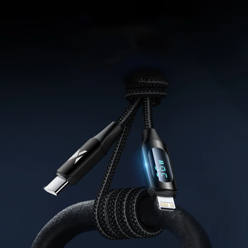 Oferuje moc ładowania do 36W oraz obsługuje protokół Power Delivery, co znacząco przyspiesza proces ładowania. Wbudowany cyfrowy wyświetlacz LED pozwala na monitorowanie parametrów ładowania w czasie rzeczywistym. Dodatkowo, kabel umożliwia jednoczesne ładowanie i przesyłanie danych z prędkością 480 Mbps.