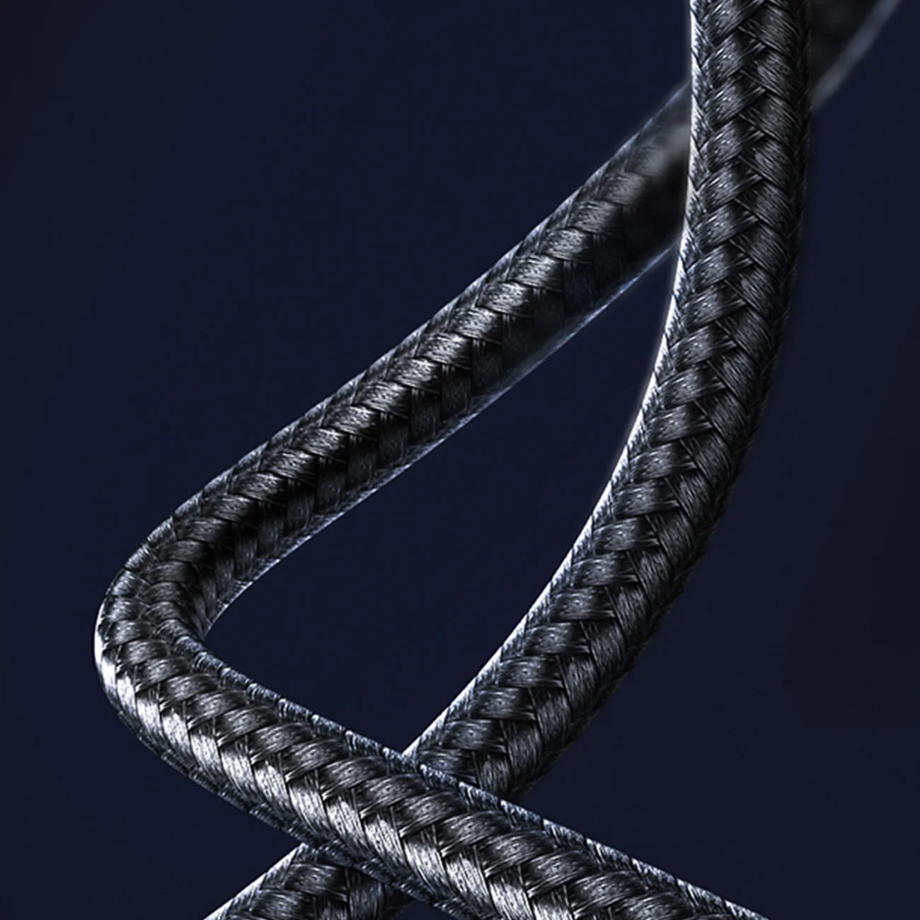 Dzięki bocznym wtykom, kabel minimalizuje ryzyko uszkodzenia spowodowanego przypadkowym wyginaniem. Wykonany z wysokiej jakości materiałów, z mocnym nylonowym opletem, zapewnia długotrwałe użytkowanie.