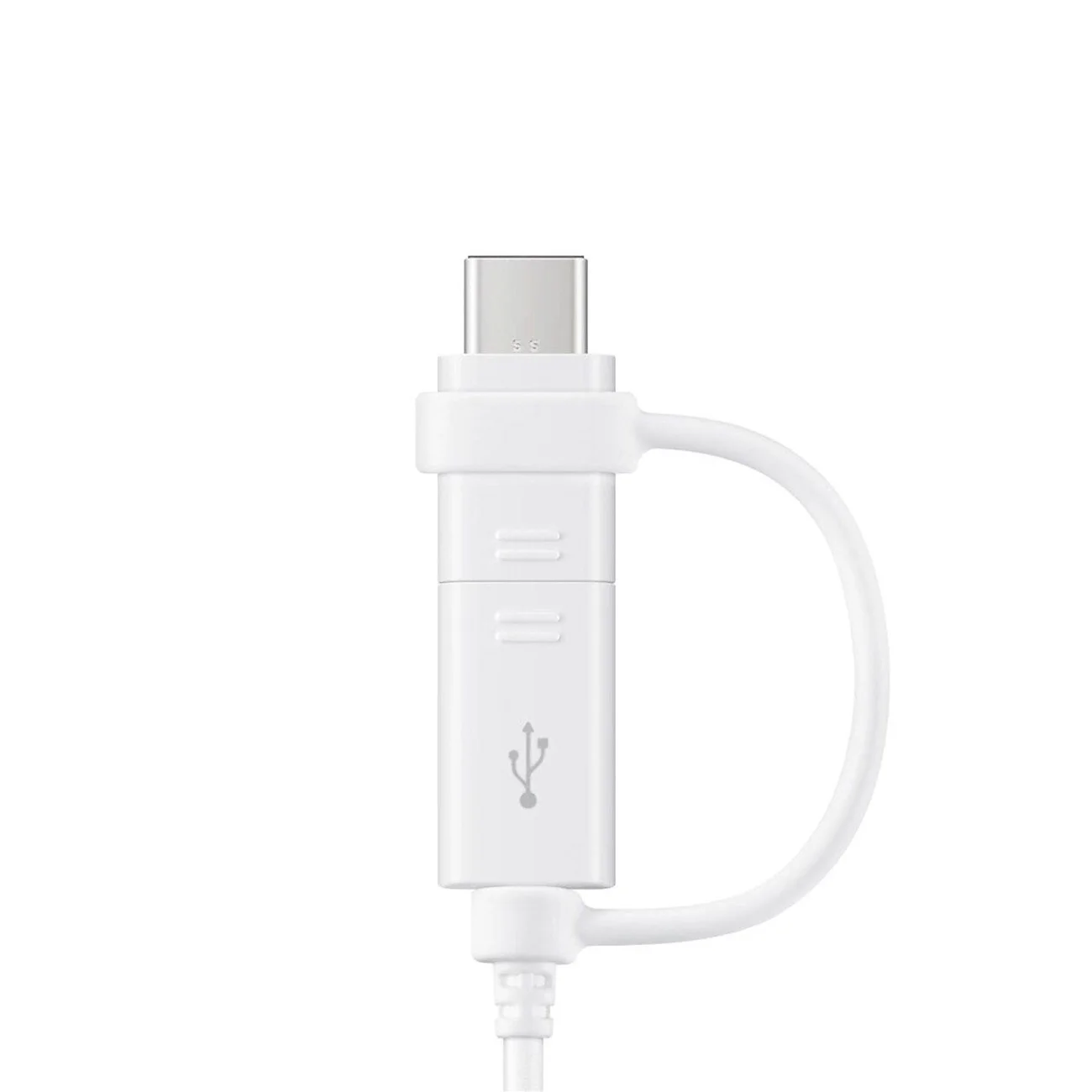Kabel Samsung Combo USB-A - micro USB i USB-C 1.5m - biały to wszechstronny produkt, który łączy w sobie funkcje dwóch kabli w jednym. Dzięki możliwości przełączania między złączami, z łatwością naładujesz smartfony, starsze telefony oraz aparaty fotograficzne.