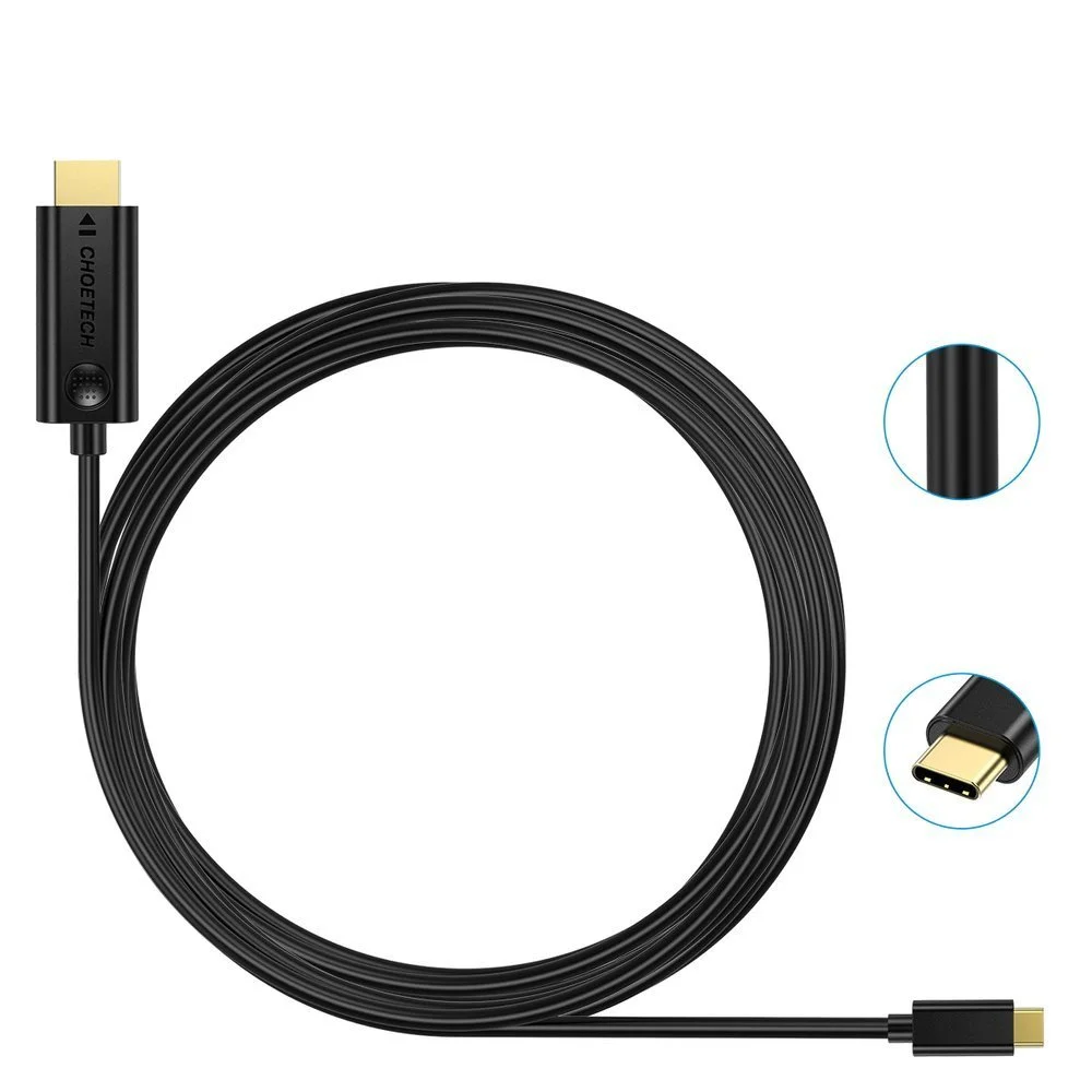 Kabel przewód USB Typ C - HDMI 4K 30Hz 3m czarny od renomowanej marki Choetech to idealne rozwiązanie do przesyłania obrazu i dźwięku z urządzeń z portem USB Typ C na telewizory, monitory oraz projektory z portem HDMI.