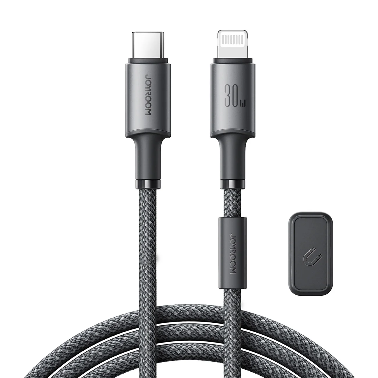 Kabel przewód USB-C - iPhone Lightning z organizerem uchwytem magnetycznym 1.2m - szary