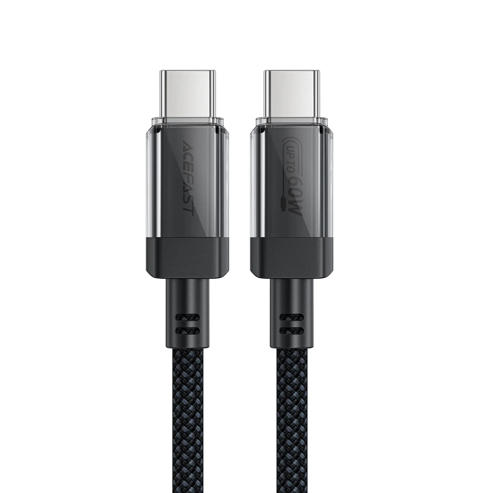 Kabel przewód USB-C z nylonowym oplotem PD 60W 480Mb/s - czarny