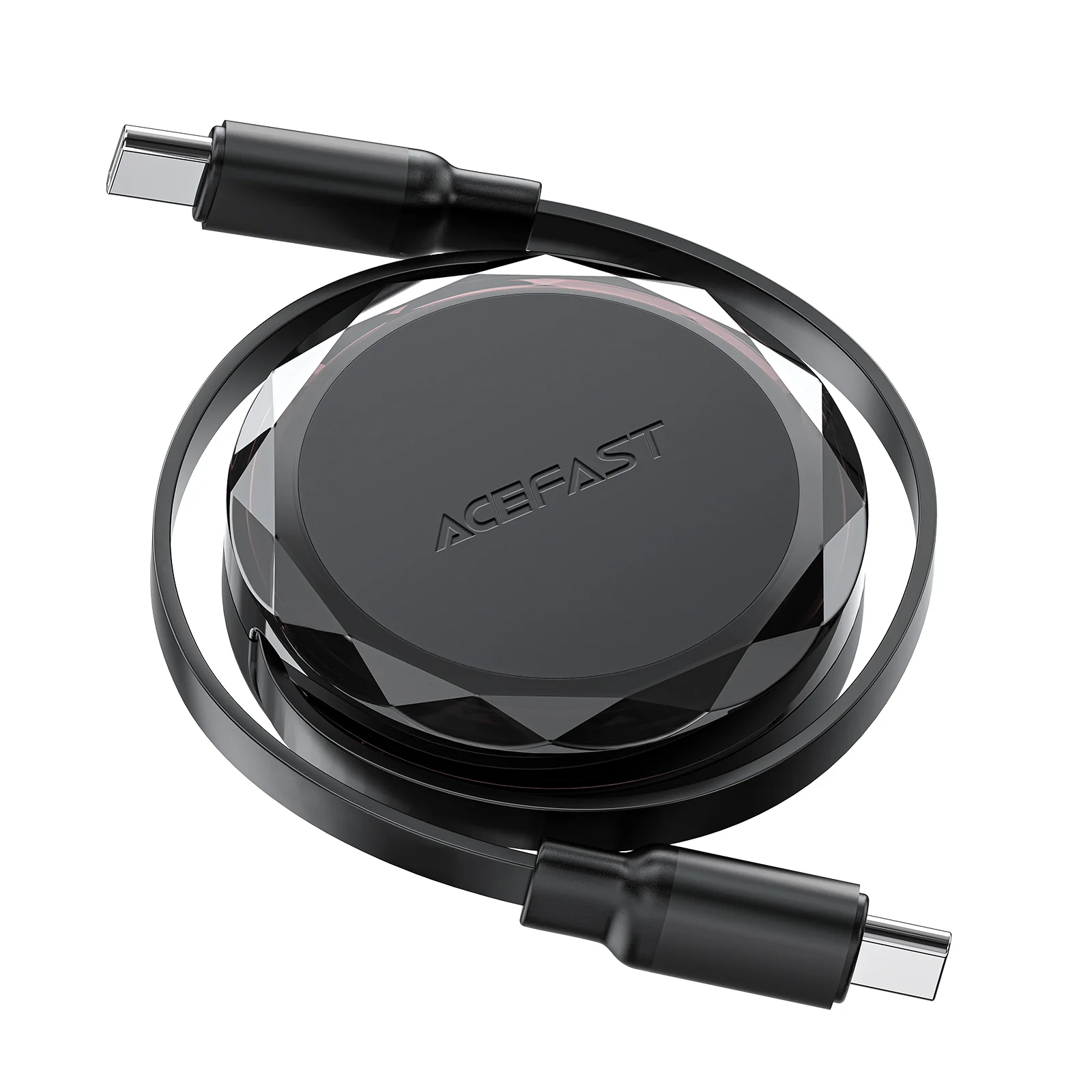 Kabel przewód USB-C - USB-C zwijany z organizerem 60W - czarny
