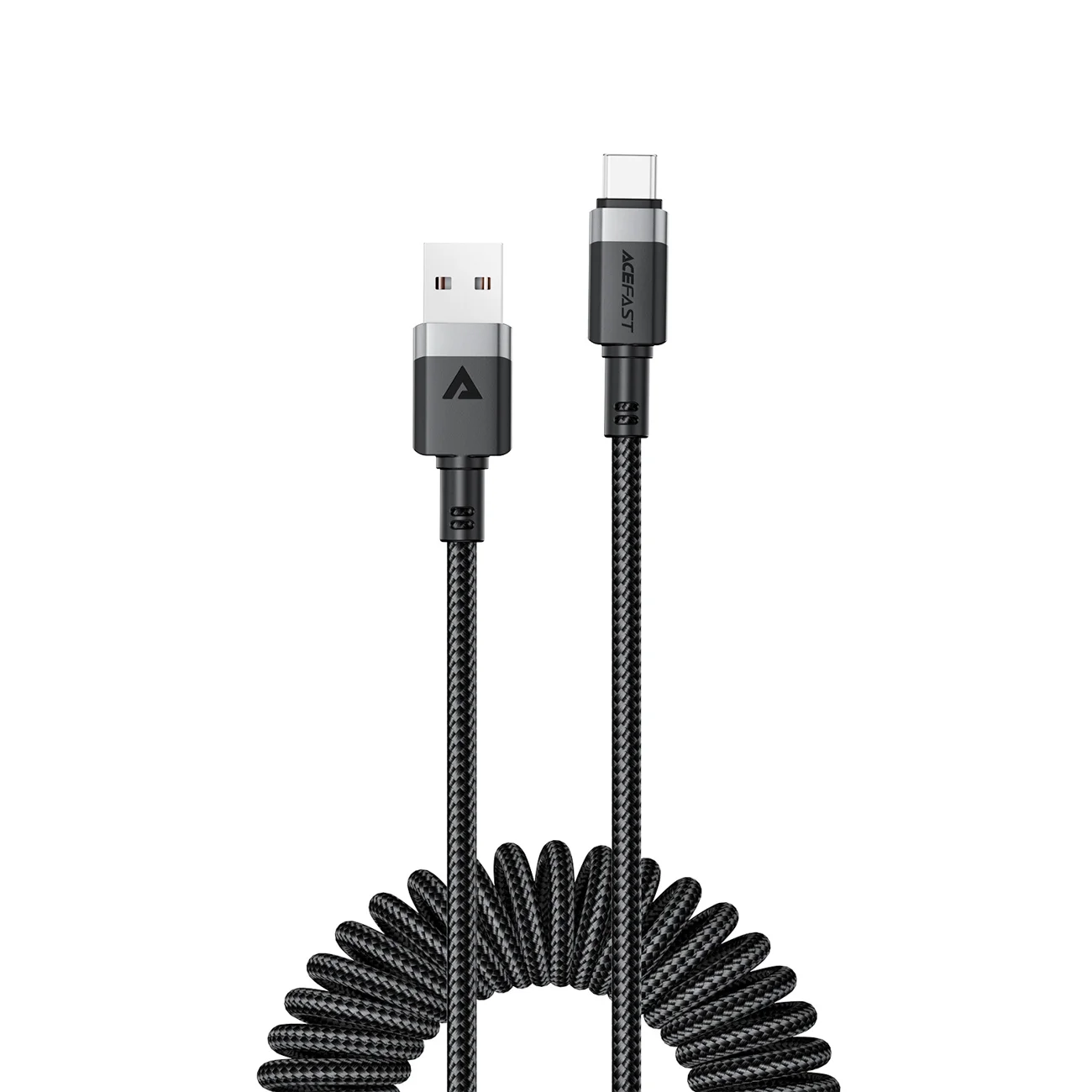 Kabel przewód spiralny USB-A - USB-C 480Mb/s 3A 1.2m - czarny
