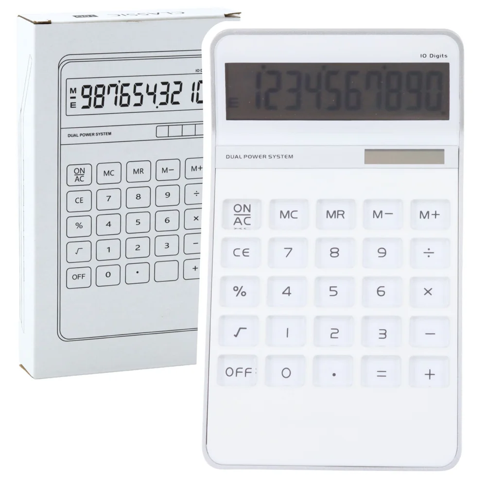 KALKULATOR BIUROWY BIAŁY – NOWOCZESNY DESIGN, PODWÓJNE ZASILANIE, 10-CYFROWY WYŚWIETLACZ