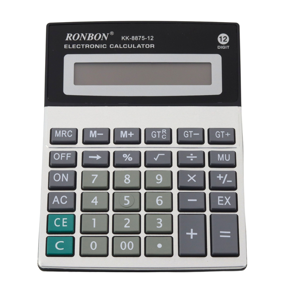 KALKULATOR BIUROWY RONBON KK-8875-12 – 12-CYFROWY WYŚWIETLACZ, FUNKCJE GT I MU, BATERIA AA