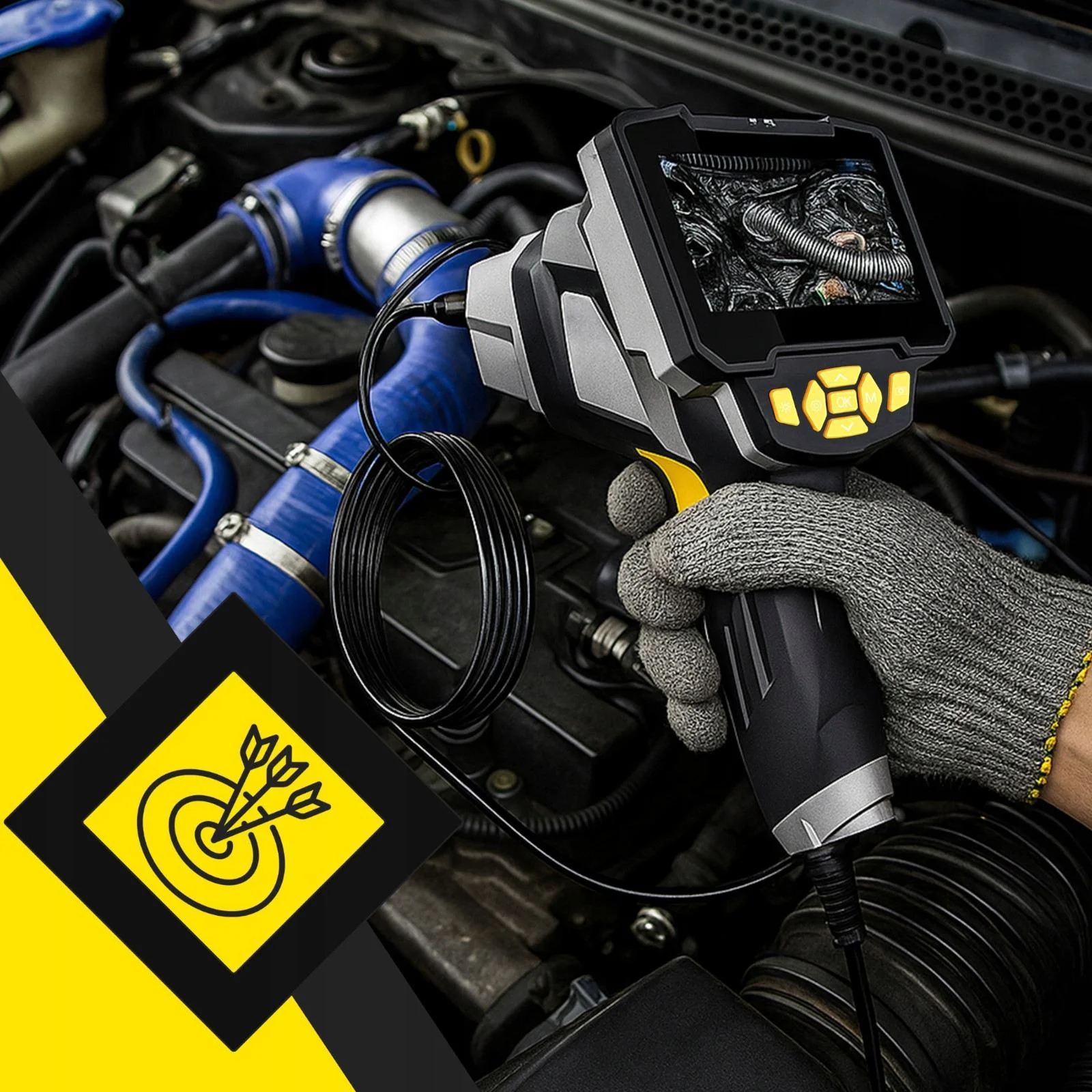 Kamera inspekcyjna warsztatowa E697 to profesjonalne narzędzie, które zostało stworzone z myślą o mechanikach, hydraulikach i serwisantach. Dzięki matrycy Full HD 1080p oraz dwóm kamerom (przedniej i bocznej), urządzenie umożliwia dokładną inspekcję nawet w trudno dostępnych miejscach.