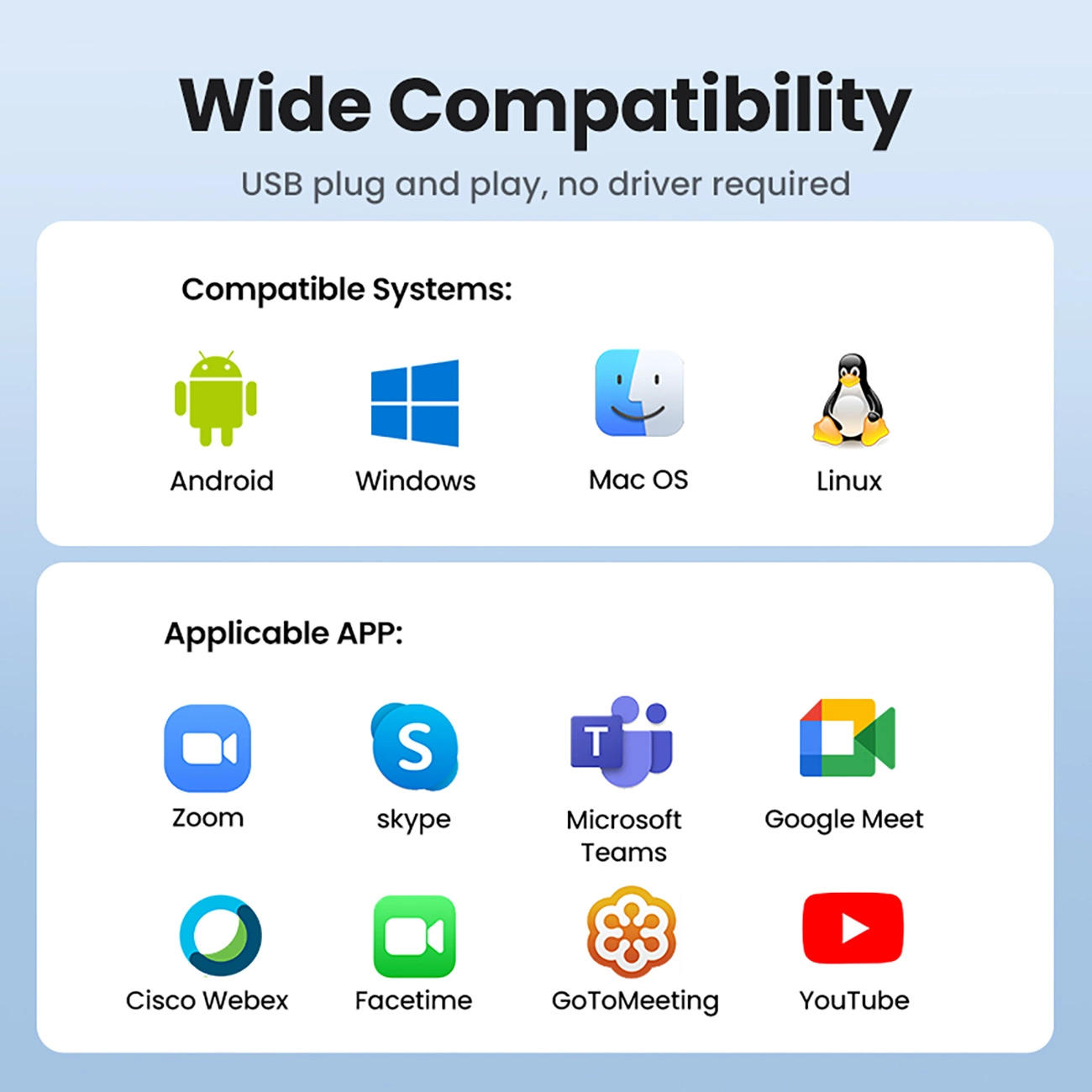Kamera Ugreen CM678 nie wymaga instalacji sterowników, co sprawia, że jest niezwykle łatwa w użyciu. Po prostu podłącz ją do portu USB i rozpocznij korzystanie z wysokiej jakości nagrań oraz rozmów wideo.