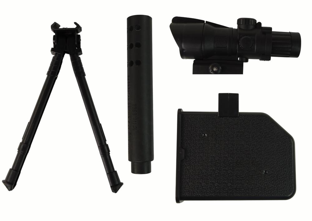 Karabin AMT jest wyposażony w statyw, który pozwala na stabilne podparcie i podtrzymywanie broni. Dzięki niemu użytkownik może lepiej określić cel, utrzymując pistolet na stałej wysokości i stabilnie podpartym. Nóżki są przydatne zarówno podczas celowania na odległość, jak i w trakcie strzelania z pozycji stojącej.
