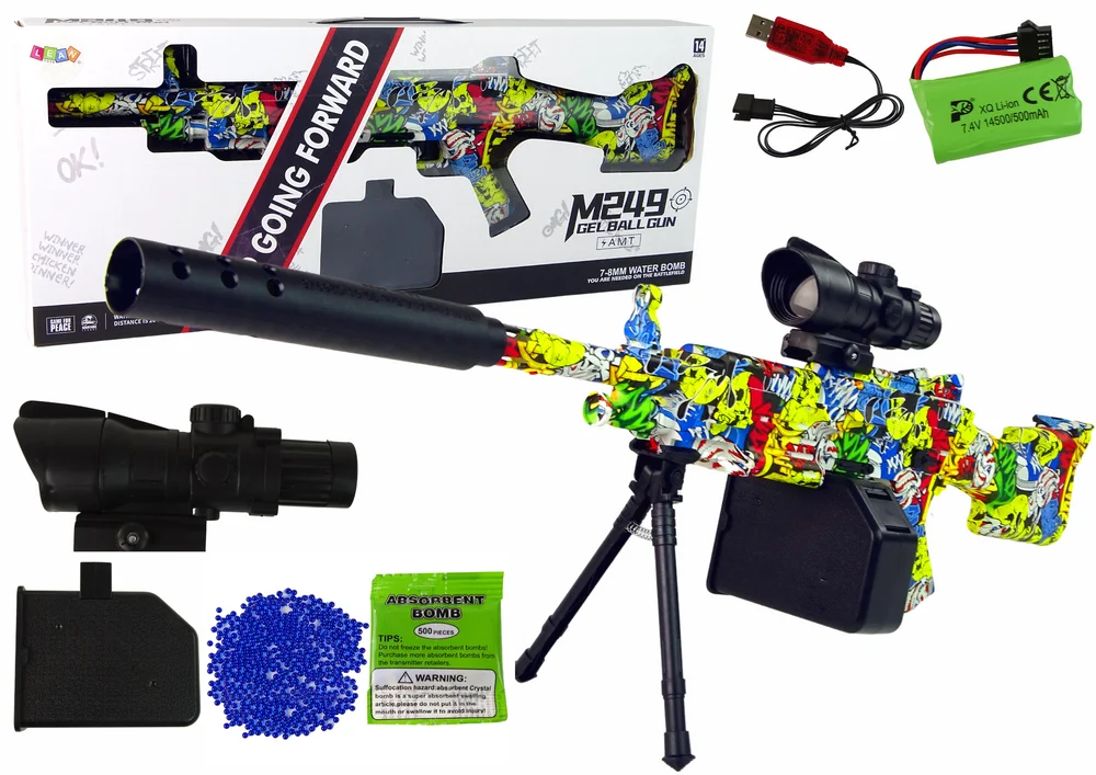 Pistolet AMT na kulki wodne z motywem graffiti i dołączoną lunetą to idealna zabawka dla miłośników militariów i fanów gier taktycznych. Zapewnia ona zarówno emocjonujące akcje, jak i umożliwia rozwijanie zdolności celowania i strategii. Ta zabawka dostarczy wiele godzin zabawy i może stać się centrum uwagi podczas zabaw na świeżym powietrzu.