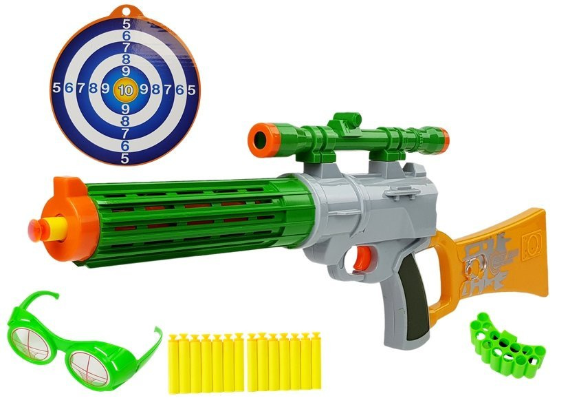 Zabawki imitujące pistolety są elementami, które bardzo często występują w zabawach chłopców. Urozmaicają one zabawę, równocześnie pomagając w odegraniu różnorodnych scenariuszy zabaw. Są to także elementy ułatwiające wczucie się w rolę dzielnych wojowników i bohaterów rodem z filmów kryminalnych. Prezentowany karabin na naboje piankowe z pewnością zajmie kilkuletnich chłopców na długie godziny, a także pozwoli im na zaaranżowanie wielu ciekawych zabaw, na które pomysł podsunie im wyobraźnia.