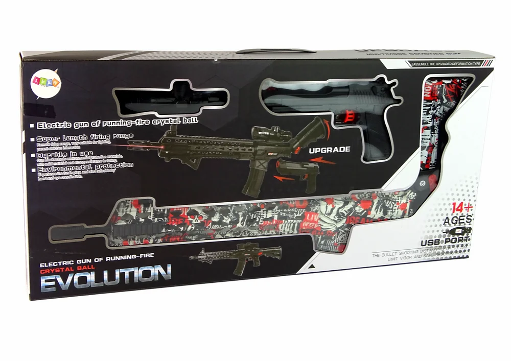 Niezwykłą cechą tego zestawu jest możliwość korzystania z pistoletu osobno lub włożenia go do karabinu, tworząc tym samym bardziej wszechstronną broń. Karabin jest zasilany akumulatorowo, co zapewnia długotrwałe użytkowanie.
