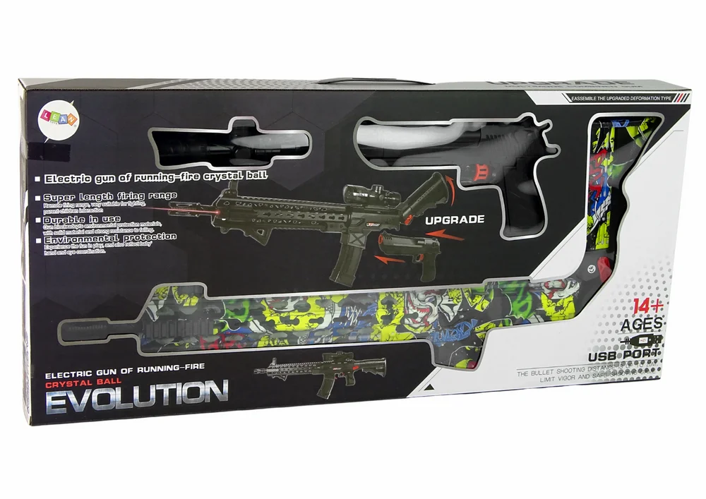 Niezwykłą cechą tego zestawu jest możliwość korzystania z pistoletu osobno lub włożenia go do karabinu, tworząc tym samym bardziej wszechstronną broń. Karabin jest zasilany akumulatorowo, co zapewnia długotrwałe użytkowanie.