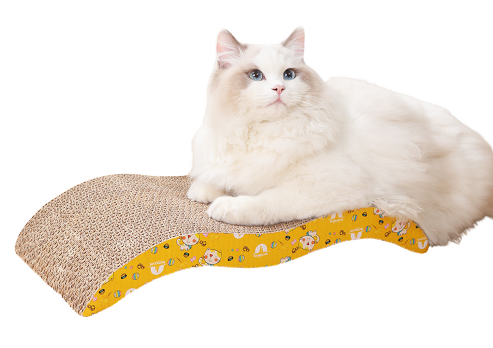 ✔️ Wielofunkcyjność – Drapak ma kształt łuku, co czyni go idealnym nie tylko do drapania, ale także jako wygodna leżanka dla kota.