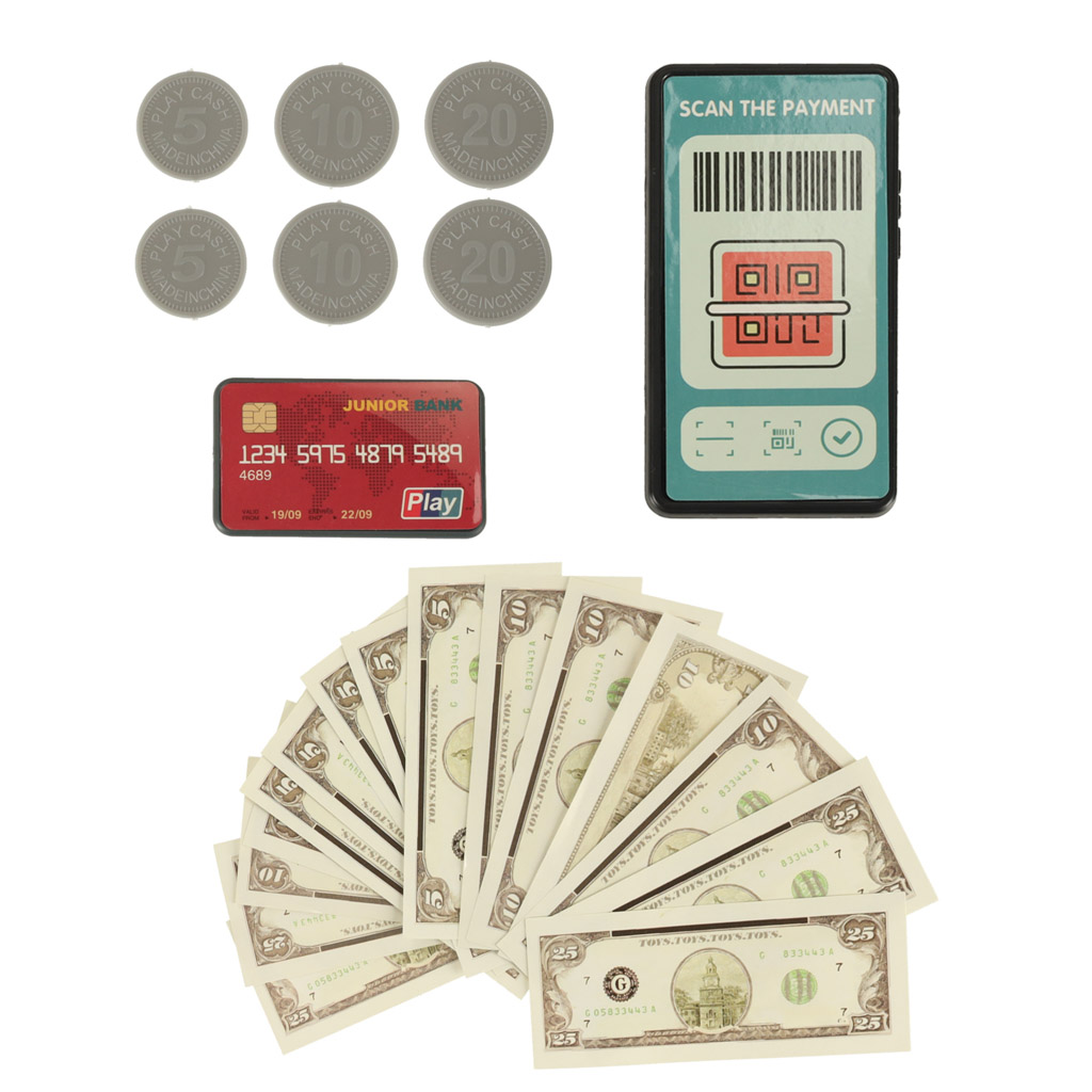 W zestawie znajdziesz nie tylko kasę, ale również akcesoria takie jak owoce, warzywa, napoje, a także kartę płatniczą i środki płatnicze do zabawy. Dzięki nim dziecko nauczy się przeliczania i wydawania reszty, a także rozwijać umiejętności planowania i komunikacji.