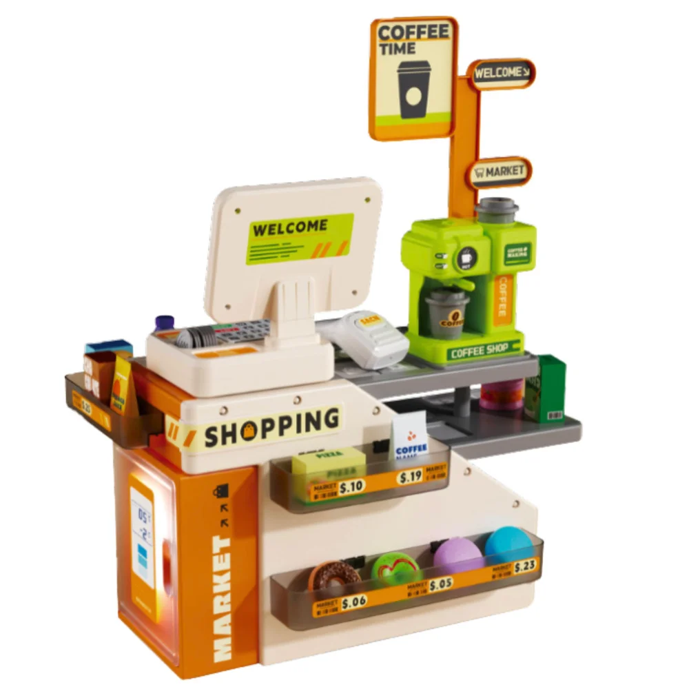 Kasa fiskalna z wbudowaną kawiarnią to rozbudowana i kolorowa zabawka, która zapewnia dzieciom wiele godzin kreatywnej i angażującej zabawy. To kompletne stanowisko małego sprzedawcy — pełne funkcjonalnych elementów, realistycznych dźwięków i ciekawych akcesoriów zachęcających do odgrywania scenek, uczenia się nowych ról społecznych oraz ćwiczenia wyobraźni.